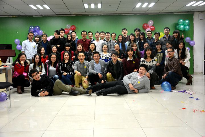 晚上19点,明德主楼930会议室座无虚席,气氛热烈而融洽。联谊晚会上每个节目环节都独具特色。第一个游戏名为“两人三足踩气球”,现场抽取男女共8人,一男一女共组成4队,两人的一只脚绑在一起,并系上5个气球,然后用另外两只脚踩别队的气球,脚上剩下气球最多者获胜。这个有趣的游戏增进了大家的认识。晚会的高潮出现在“非诚勿扰”环节,几位嘉宾轮流展示才艺,受观众青睐的嘉宾可以留下进行进一步的交流。活动现场笑声和掌声不断,气氛热烈而踊跃。联谊活动结束时已是晚上10点,大家仍然在拍照留念。