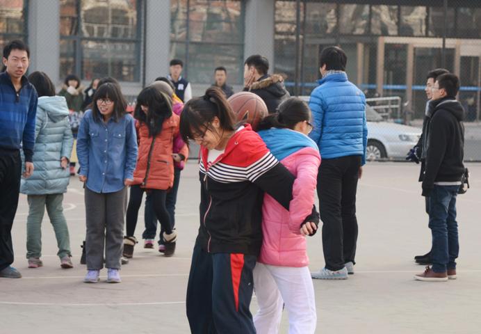 紧接着的第一场团体赛是“螃蟹运球”。比赛开始前,各代表队认真讨论比赛策略。这项活动要求两人背靠背运球并将球投进篮筐,赛中出现球中途掉出和反复投篮才投进的情况,引起场下队员焦急的催促,整个赛场气氛紧张而热烈。“这个项目既好玩又培养了团队协作能力,紧张的共同运球之后终于迎来投篮的瞬间,很有意思!”来自劳动人事学院的参赛队员激动地说。接下来进行的是“八人九足”,这项活动要求多名队员间的协调与默契。准备时队员们认真演练,可正式比赛中为了率先到达终点,还是出现步调不一,手忙脚乱的情况,引起观众的阵阵欢笑。第三项活动是障碍一百米接力,每个队员需要完成转呼啦圈、跨栏以及跳绳等任务,同时场上的裁判员们也跟随参赛队员脚步,认真监督任务完成情况,观众加油的呐喊声回荡在赛场上空。作为裁判员之一的叶舟舟同学是农业与农村发展学院的一名本科新生,这是她第一次参加“冬之旅”活动,对此她笑着说道:“比赛好有趣,虽然我是裁判,也有时忍不住想要和大家一块玩,明年我一定要参赛!”。最后一项赛事是跳大绳。短短的3分钟内,队员们轻快的从绳中依次穿过,矫健的身姿引起观众们的阵阵喝彩,将这次活动推向高潮。