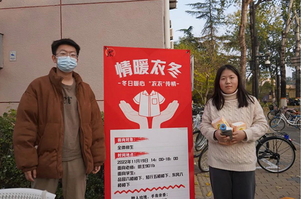 本次活动在知行楼群、品园楼群、东风楼群分别设置了3个捐衣点,每个捐衣点均由两名志愿者负责收集衣物。