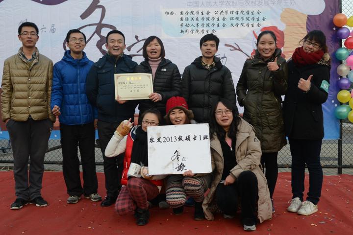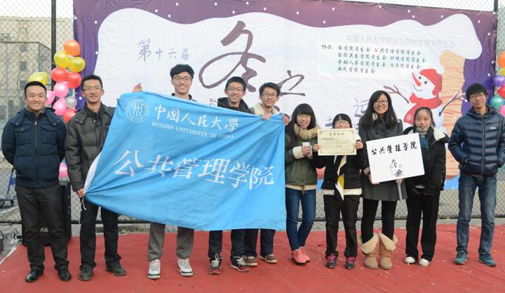 2013-12-2412月18日下午,由我院党委、团委主办,院研究生会、学生会承办,法学院、公共管理学院、国学院、国际关系学院、环境学院、劳动人事学院和文学院等学院学生会协办的第十六届“冬之旅”趣味运动会在校医院北侧篮球场成功举办。