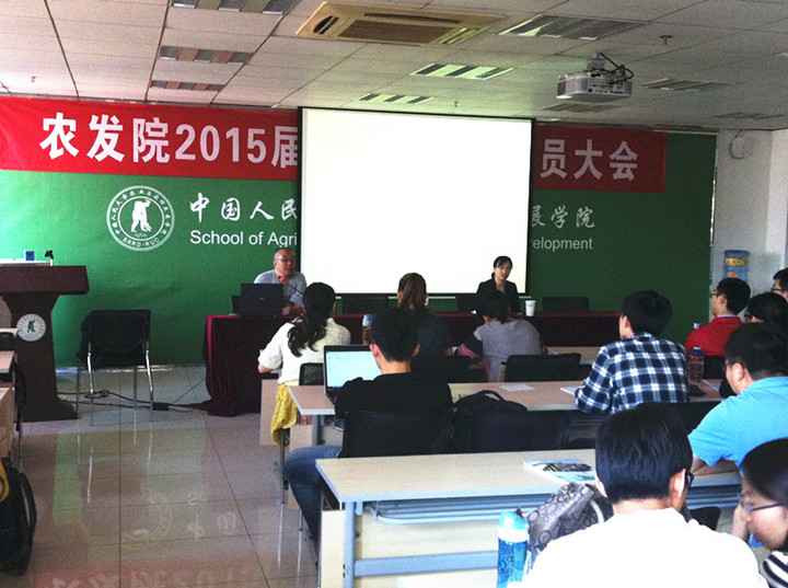 2014-09-259月24日下午,2015届毕业生就业动员大会在明德主楼930顺利举行,我院党委书记孔祥智老师和院党委副书记唐传英老师出席了此次会议,我院2015届应届毕业生参加会议。