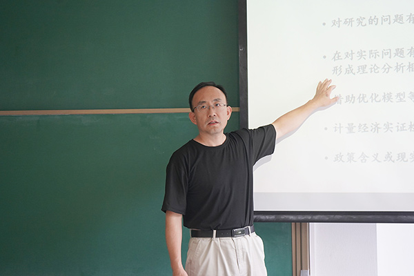 教育部高等学校农业经济管理类专业教学指导委员会主任委员唐忠教授以《农经研究生需要批判性思维》为题,为同学们做了首场讲座。他指出,研究生阶段学习的特点是,学生要自己寻找问题、自己给出答案。农业经济学研究要坚持问题导向,在推进中国式现代化的大背景下,更需要持续关注和解决中国发展现实中的真问题。他以农业部门的劳动力供给为例,梳理了刘易斯、舒尔茨、速水佑次郎等学者的观点,说明要在前人研究的基础上结合现实批判性思考,形成自己的答案。