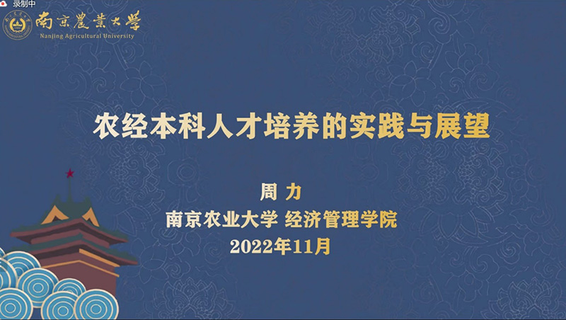 南京农业大学经济管理学院副院长周力教授以“农经本科人才培养的实践与展望”为题作主旨发言。他首先强调农村人才对于乡村振兴乃至未来整个中国发展的重要性,接着围绕本科农经专业的课程教育,围绕基础课程的标准化、精品教材的打造、研究型课程群的建设等方面介绍了南农经验,为农经领域人才培养提供了借鉴思路。
