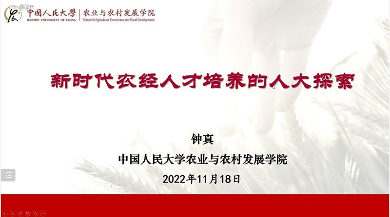 乐竞体育平台官方网站副院长钟真教授以“新时代农经人才培养的人大探索”为题作主旨发言。他从农林经济管理和农村区域发展两个本科专业的角度,分理念、探索、保障三点,详细阐述了多方联动改善本科教学条件、文理融合交叉培养等方面的举措,强调了农发在本科培养方面的实践与探索。
