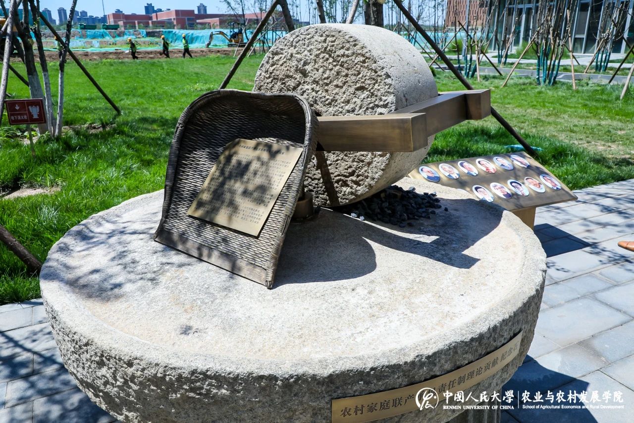 学生事务中心外,农发学院七十年院庆时,小岗村赠予学院的历史石磨盘陈列于此,这个磨盘代表了那个年代人大学子对我国农村家庭联产承包责任制所做出的重大的理论贡献。陈威老师在讲解中,带大家回顾了改革开放浪潮激荡的年代:这架石磨盘转动的不仅是粮食,更象征着农村改革的先声,是 “敢闯敢试” 精神的生动体现。同学们触摸石磨盘粗糙的表面,仿佛接过了先辈手中的接力棒 —— 从田野调研到政策建言,从学术研究到实践服务,农发人的使命在代代传承中不断延续,正由新一代学子续写新的篇章。陈老师还向家长们简单讲述了人民大学的建校史:这座从战火中诞生的大学,始终紧跟党的领导,从陕北公学,到华北联合大学、北方大学、华北大学,再到新中国成为党创办的第一所新型正规大学;无论是铁狮子胡同一号、中关村59号,还是如今的通州校区,中国人民大学始终坚定”为党育人、为国育才”的初心使命。