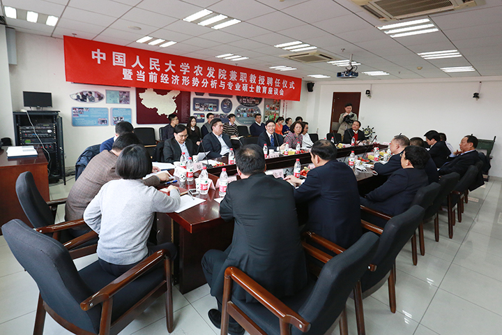 聘任仪式和座谈会由农业与农村发展学院副院长、MAE中心主任张利庠教授主持。农发学院在家的院领导、MAE中心全体人员及部分学生见证了这一重要时刻。