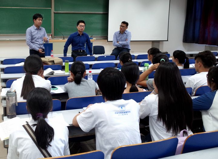 迎新大会之后,15级本科生还参加了的返校校友座谈会,我院06级本科生代表杨欧阳、贾阳、全世文三位同学回到学院,与新生分享了当年求学、考研、就业等方面的经验,并耐心回答了新生们提出的问题。