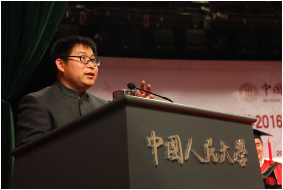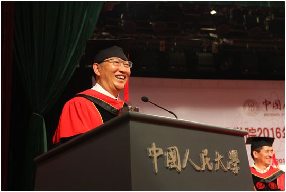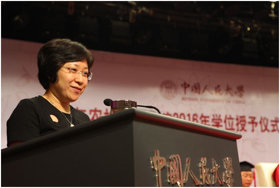 最后,农业与农村发展学院院长唐忠教授做了精彩致辞。唐院长首先向学院2016届获得学位的295名本、硕、博毕业生表达了热烈地祝贺;并带领毕业生们一起,向学院全体教师、行政人员、学生家长表达了崇高的敬意和由衷的感谢。随后,唐院长以真挚朴实的语言表达了对同学们的殷切期许:一是希望同学们认真做人,做一个内心充实、内心快乐的人,牢记“实事求是”的校训,正直、诚实、善良,努力工作,热爱生活,不欺骗别人,更别欺骗自己;二是希望同学们勿忘人民大学对其学子“行为精英,心为平民”的八字要求,“行为精英”就要有敢为天下先的创新精神,具有“为万世开太平”的胸怀,义无反顾、勇往直前,成为“国民表率、社会栋梁” 。“心为平民”,就是要保持一颗“平民”之心,一颗悲悯之心,可以张扬个性,但一定不要傲慢,可以过有品位的生活,但一定不追求奢华,做单纯而善良的人;三是希望同学们保持农发院“问题导向的学院派”的精神特质,重视理论与实际相结合的传统,既要非常“接地气,又要非常“学院派”,重视调查研究,重视学理逻辑,关注现实中的真问题,不做华而不实、哗众取宠的“标题党”,敢于担当,乐观积极,传播正能量!