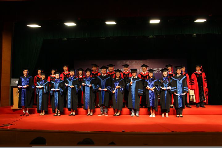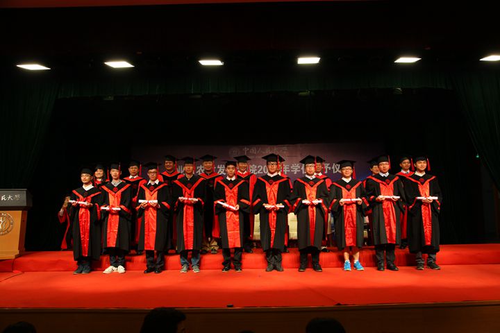 随后,学院副院长孔祥智教授宣读了《中国人民大学学位委员会关于授予硕士、学士学位的决定》。我院今年共有22人获得博士学位,232人获得硕士学位,51人获得学士学位。出席典礼的三十三名学院老师先后为硕士专业学位获得者、硕士学术学位获得者、学士学位获得者颁发学位证书,并把象征毕业的学位帽上的流苏拨到左边。